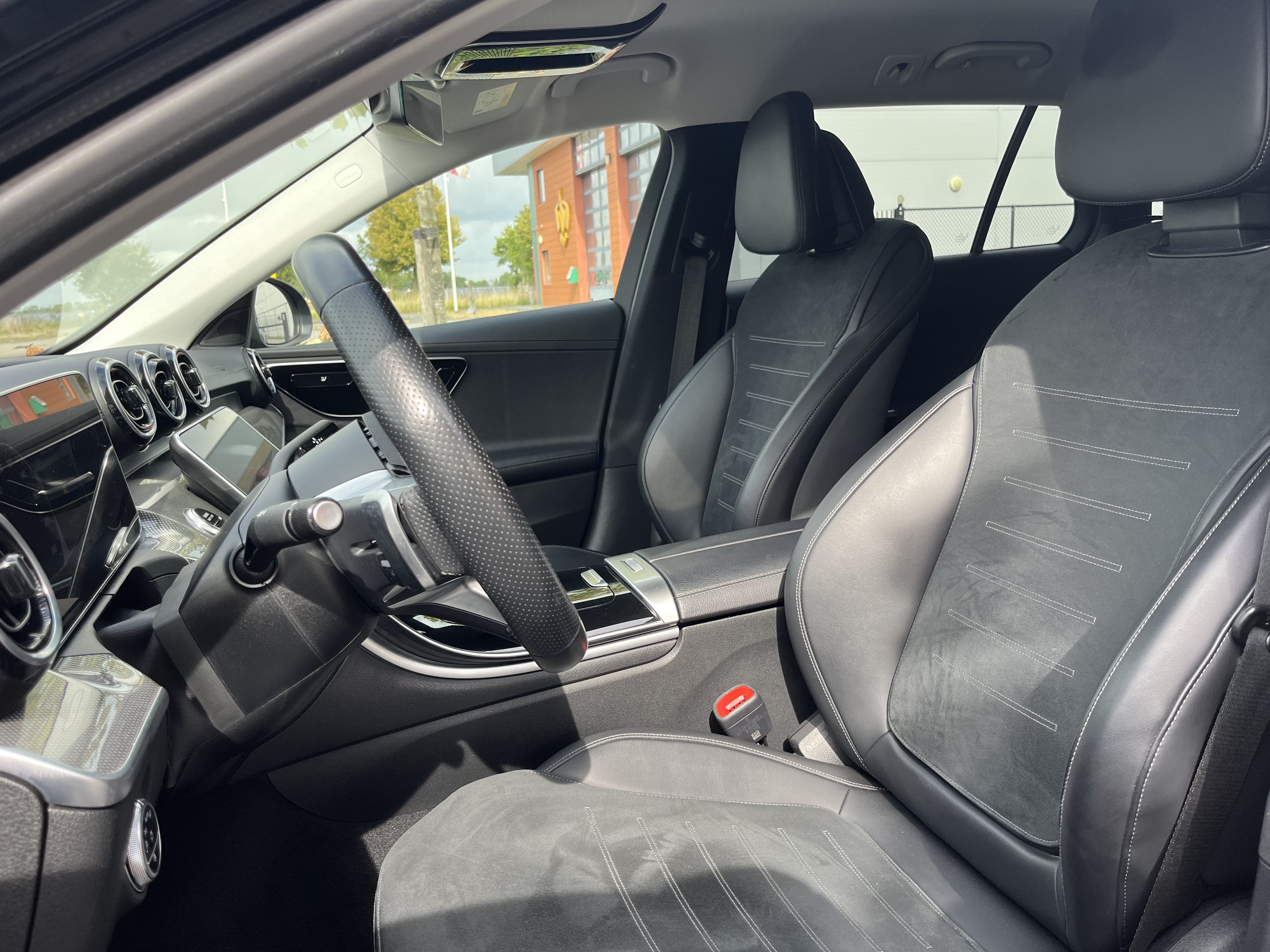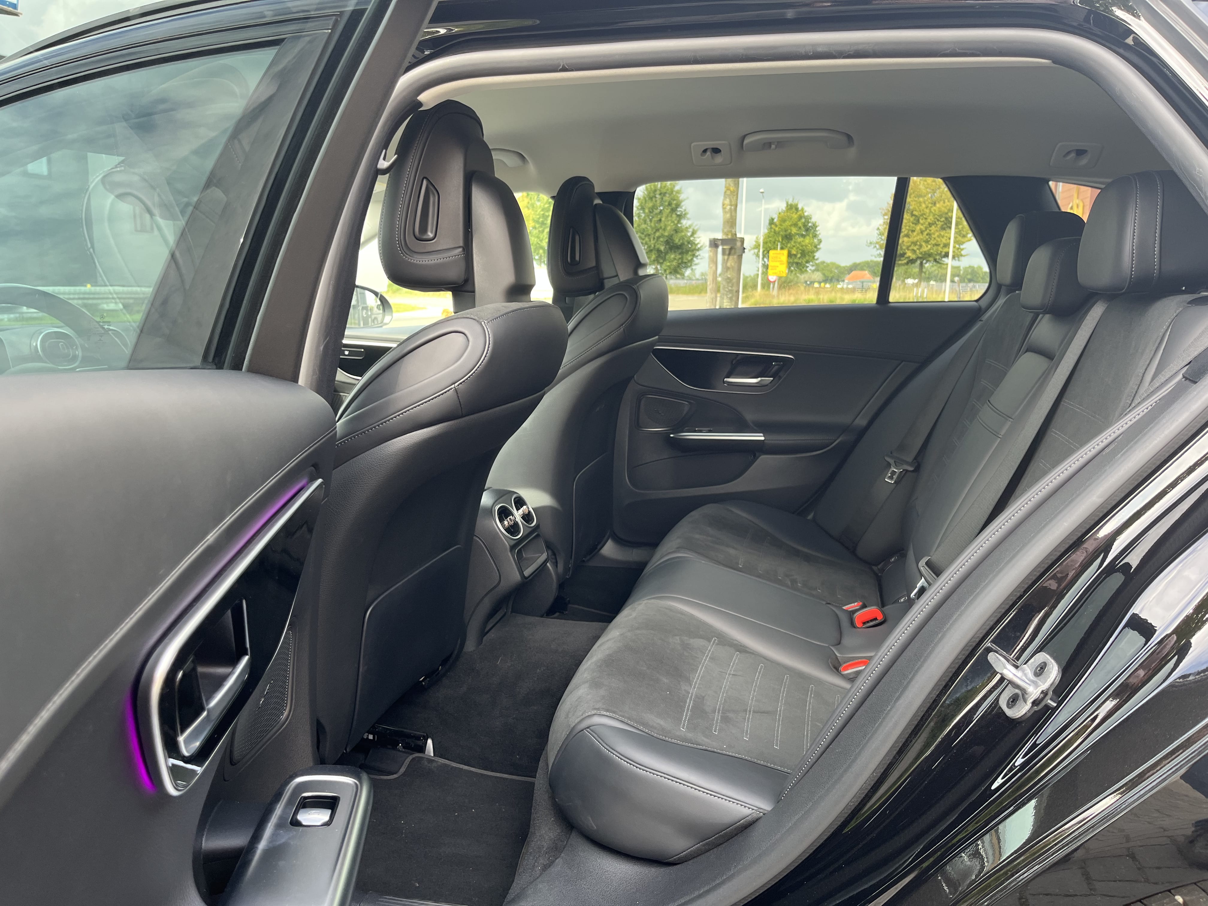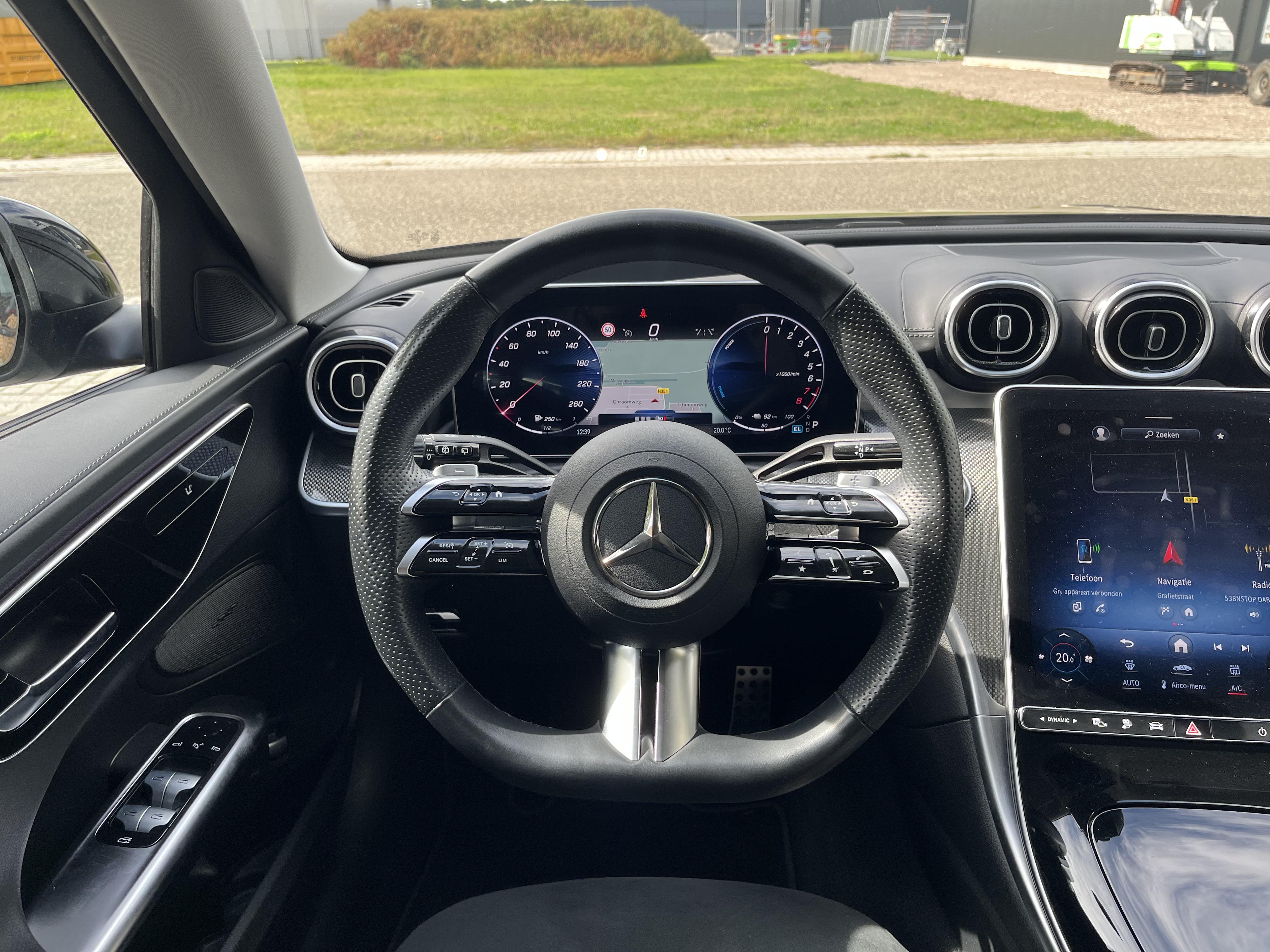 Mercedes-Benz C-klasse Estate 300 e AMG Line Algemene informatie Aantal deuren: 5 Kleur: Zwart metallic Technische informatie Vermogen: 150 kW (204 PK) Vermogen elektromotor(en): 95 kW (129 PK) Transmissie: 9 versnellingen, Automaat Actieradius: 107 km Bandenmaat voor: 225/50 R17 Bandenmaat achter: 245/45 R17 Acceleratie (0-100): 6,2 s Topsnelheid: 240 km/u Accu laden: Type 2, 11 kW Accu snelladen: Combined Charging System Maten en gewichten Laadvermogen: 635 kg GVW: 2.655 kg Afmetingen (LxBxH): 479 x 182 x 146 cm Wielbasis: 287 cm Interieur Interieurkleur: Zwart Aantal zitplaatsen: 5 Milieu en verbruik Gemiddeld elektriciteitsverbruik: 23,738317757009 kWh/100km Energielabel: A Staat Aantal sleutels: 2 (2 handzenders) Financiële informatie BTW/marge: BTW verrekenbaar voor ondernemers Motorrijtuigenbelasting: € 372 - € 412 per kwartaal Comfort & Interieur Achterbank elektrisch neerklapbaar Achterbank in delen neerklapbaar Airco automatisch Bandenspanningscontrolesysteem Binnenspiegel automatisch dimmend Connected services DAB-ontvanger Elektrische ramen achter Elektrische ramen voor Elektrisch verstelbare voorstoel(en) Keyless start Lendesteunen (verstelbaar) Multimedia-voorbereiding Navigatie full map Radio Sportstoelen Sportstuur Spraakbediening Stof/kunstlederen bekleding Stuurwiel multifunctioneel Telefoonintegratie premium Verwarmde voorstoelen Volledig digitaal instrumentenpaneel Exterieur "Lichtmetalen velgen 5-spaaks 18""" Achteruitrijcamera Aluminium delen exterieur AMG-styling Buitenspiegel(s) automatisch dimmend Buitenspiegels elektrisch inklapbaar Buitenspiegels elektrisch verstelbaar Buitenspiegels met verlichting Buitenspiegels verwarmbaar Centrale deurvergrendeling met afstandsbediening Dakrails Elektrisch bedienbare achterklep Grootlicht-assistent LED dagrijverlichting Sportonderstel Verlaagde carrosserie Veiligheid Accident Avoidance System Airbag(s) hoofd Airbag(s) hoofd achter Airbag(s) hoofd voor Airbag(s) side voor Airbag bestuurder Airbag passagier Alarmsysteem Anti Blokkeer Systeem (ABS) Bots waarschuwing systeem Cruise control Dodehoek detector Electronic Stability Program (ESP) Extra getint glas Parkeer-assistent Parkeersensor achter Parkeersensor voor Regensensor Rijstrooksensor met correctie Startblokkering Verkeersbord detectie