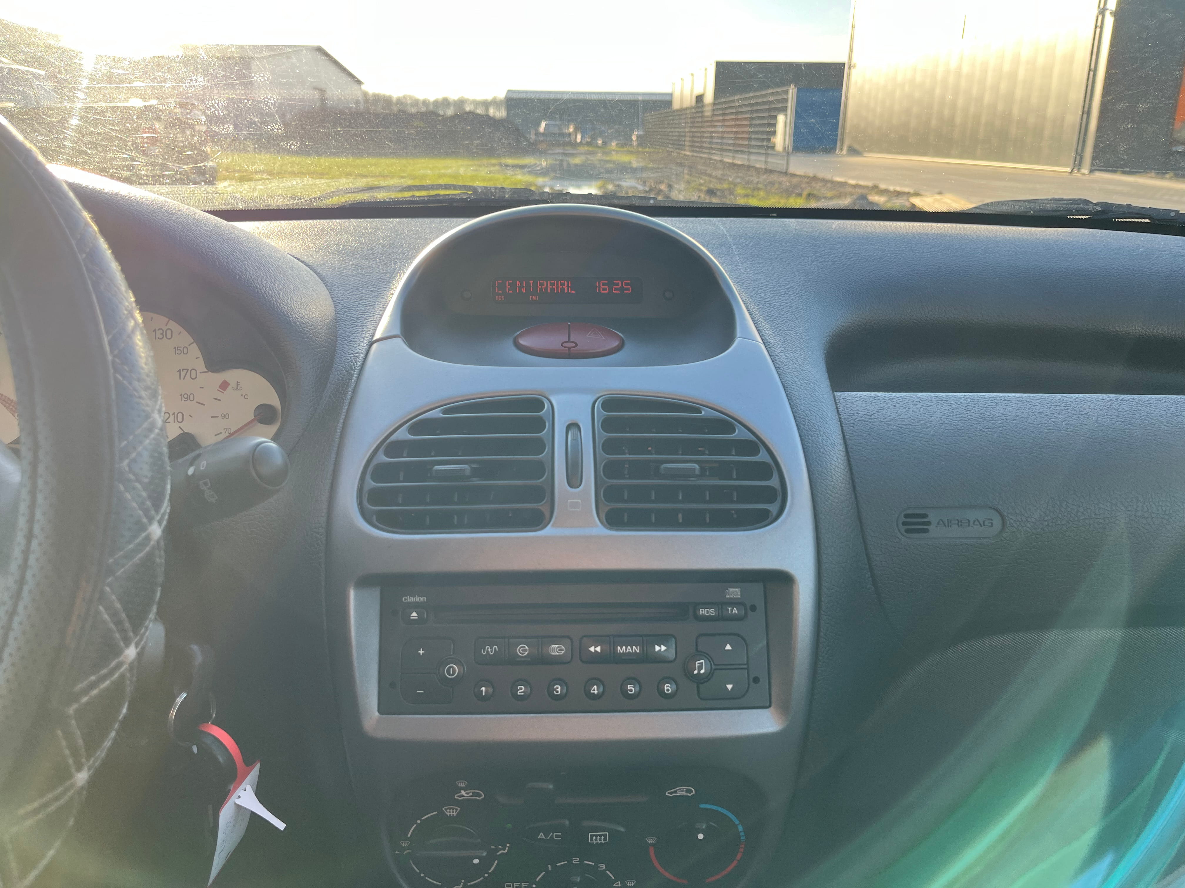 Peugeot 206 1.4 Génération Airco | NW Riem | Cruise Algemene informatie Aantal deuren: 3 Kleur: Grijs metallic Technische informatie Vermogen: 55 kW (75 PK) Transmissie: 5 versnellingen, Handgeschakeld Acceleratie (0-100): 12,2 s Topsnelheid: 170 km/u Maten en gewichten Laadvermogen: 525 kg GVW: 1.450 kg Wielbasis: 244 cm Interieur Interieurkleur: Donkergrijs Aantal zitplaatsen: 5 Milieu en verbruik Brandstofverbruik in de stad: 8,4 l/100km (1 op 11,9) Brandstofverbruik op de snelweg: 5 l/100km (1 op 20,0) Energielabel: D Onderhoud, historie en staat Onderhoudsboekjes: Aanwezig Aantal sleutels: 2 (1 handzender) Financiële informatie BTW/marge: BTW niet verrekenbaar voor ondernemers (margeregeling) Motorrijtuigenbelasting: € 92 - € 99 per kwartaal