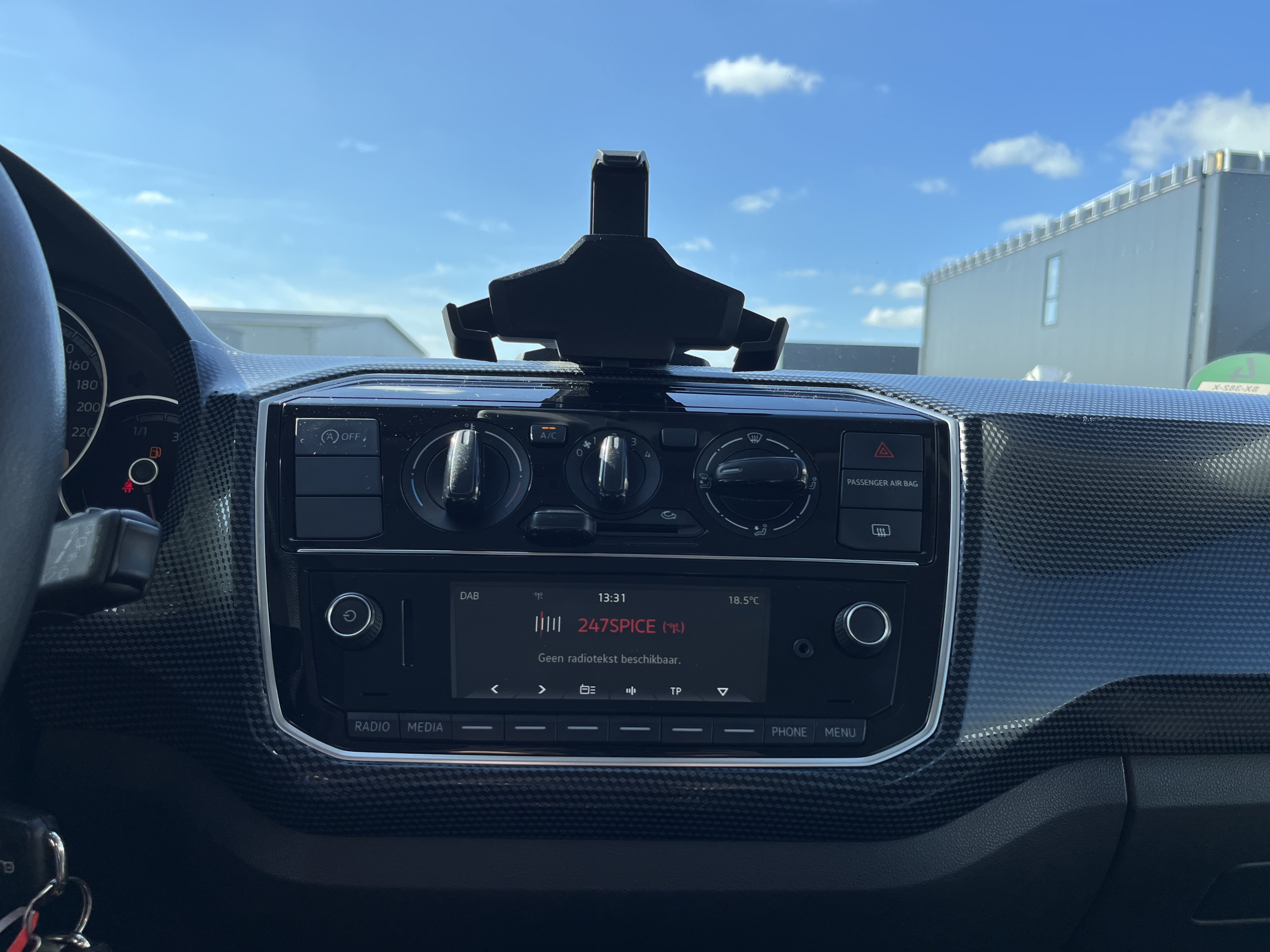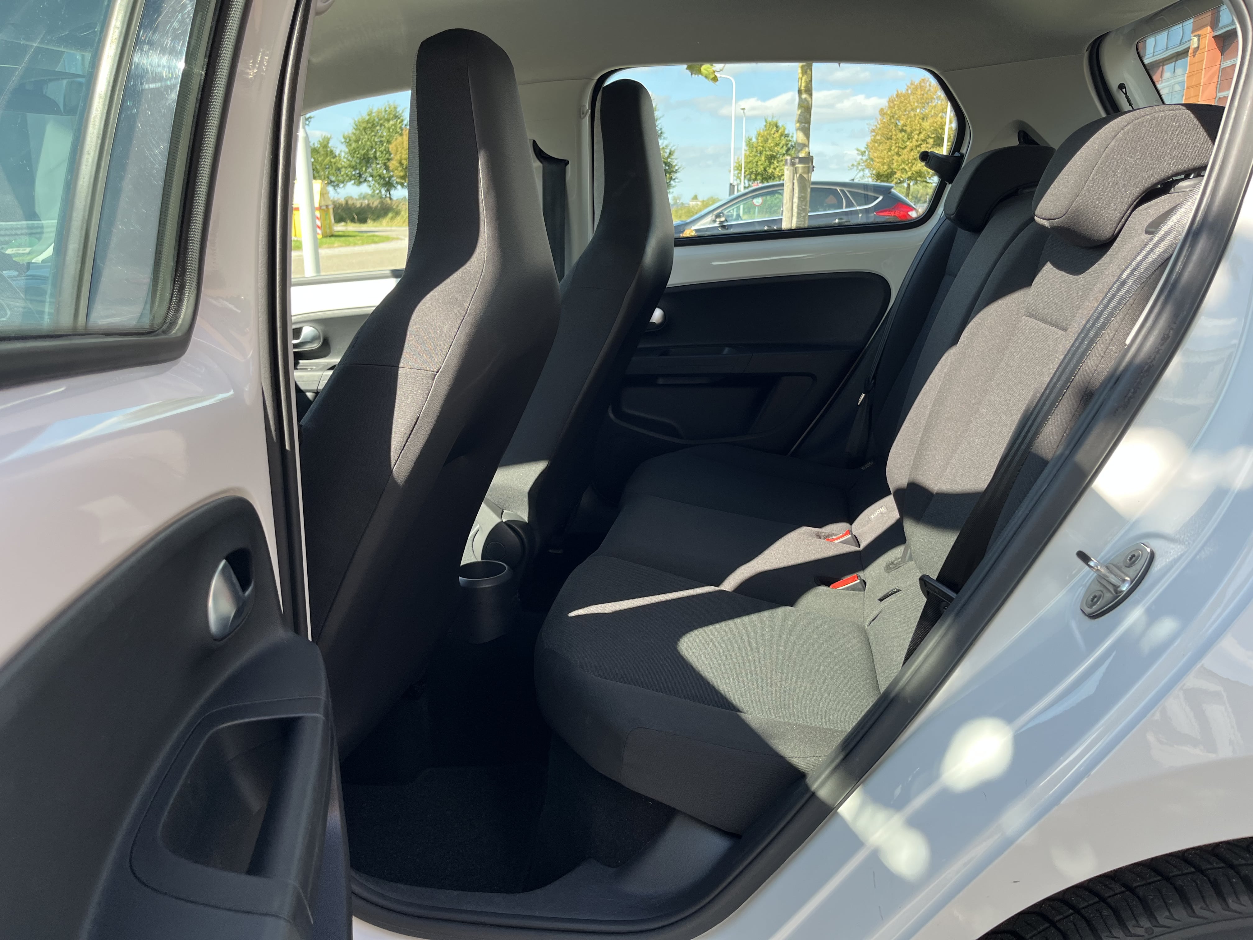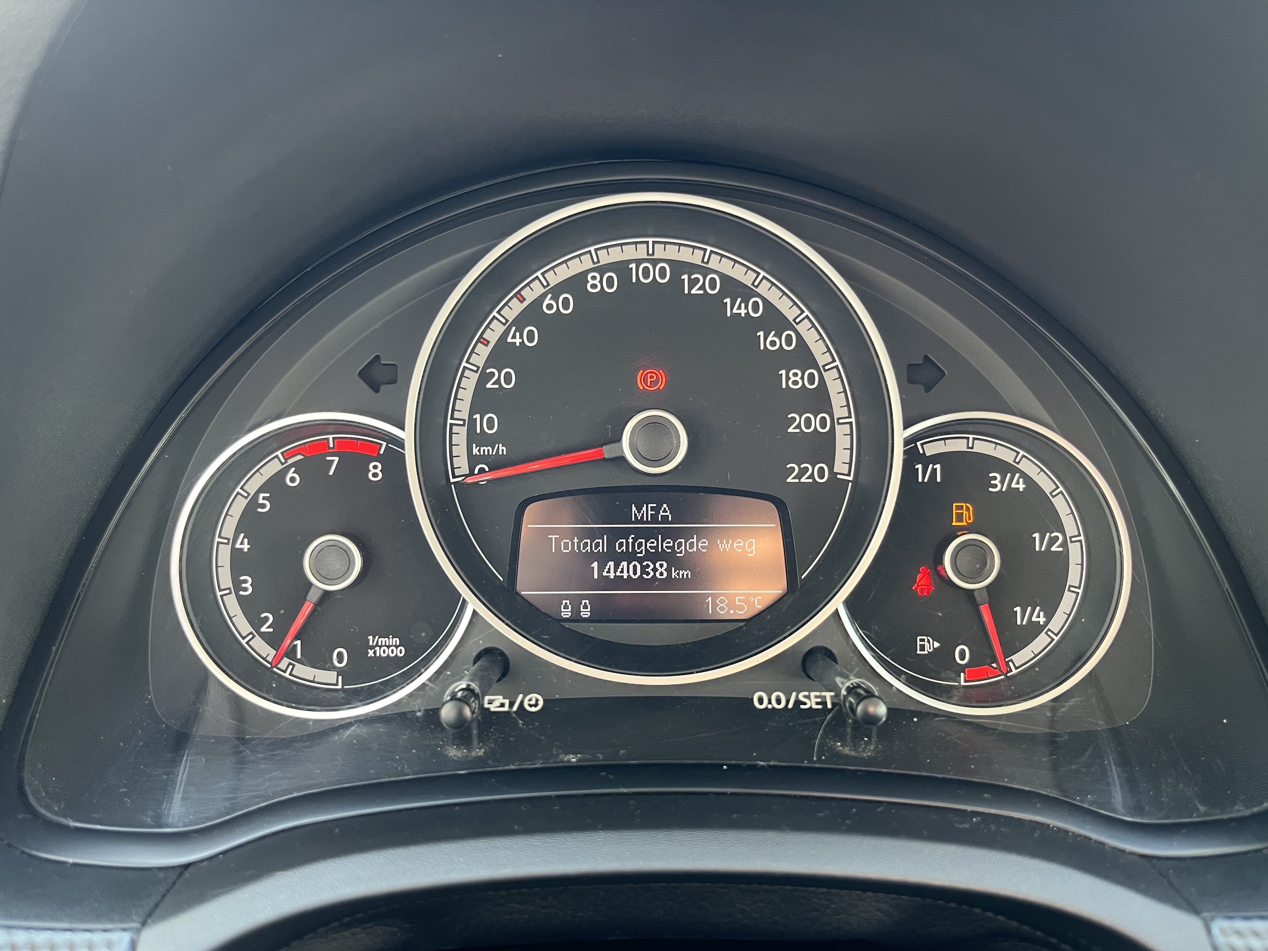 Volkswagen Up! 1.0 BMT move up! Algemene informatie Aantal deuren: 5 Kleur: Wit Technische informatie Vermogen: 44 kW (60 PK) Transmissie: 5 versnellingen, Handgeschakeld Acceleratie (0-100): 14,4 s Topsnelheid: 162 km/u Maten en gewichten Laadvermogen: 496 kg GVW: 1.330 kg Wielbasis: 241 cm Interieur Interieurkleur: Zwart Aantal zitplaatsen: 4 Milieu en verbruik Brandstofverbruik in de stad: 4,9 l/100km (1 op 20,4) Brandstofverbruik op de snelweg: 3,7 l/100km (1 op 27,0) CO₂-uitstoot: 96 g/km Energielabel: C Staat Aantal sleutels: 2 (1 handzender) Financiële informatie BTW/marge: BTW niet verrekenbaar voor ondernemers (margeregeling) Motorrijtuigenbelasting: € 67 - € 74 per kwartaal Comfort & Interieur Achterbank in delen neerklapbaar Airco Bandenspanningscontrolesysteem Bestuurdersstoel in hoogte verstelbaar Boordcomputer Elektrische ramen voor Multimedia-voorbereiding Radio Stuurbekrachtiging snelheidsafhankelijk Stuur verstelbaar Exterieur Buitenspiegels in carrosseriekleur Centrale deurvergrendeling met afstandsbediening Dimlichten automatisch LED dagrijverlichting Warmtewerend glas Veiligheid Accident Avoidance System Achteropkomend verkeer waarschuwing Airbag(s) hoofd voor Airbag(s) side voor Airbag bestuurder Airbag passagier Anti Blokkeer Systeem (ABS) Brake Assist System Electronic Brake Distribution (EBD) Electronic Stability Program (ESP) Hill hold-functie Regensensor Start/stop systeem Startblokkering Tractie Controle Systeem (TCS)
